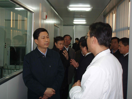 ????? 2007年11月20日,天津市委常委、濱海新區工委書記、濱海新區管委會主任茍利軍在南開大學校長饒子和、天津市科委主任李家俊、和市經委、市科委和濱海委有關領導同志的陪同下,蒞臨國家干細胞工程技術研究中心深入視察了干細胞研究中心、臍帶間充質干細胞庫,聽取了全國政協常委、國家干細胞工程技術研究中心主任、法國國家醫學科學院外籍院士韓忠朝教授關于國家干細胞工程技術研究中心取得的科研成果及臍帶間充質干細胞項目產業化發展情況的匯報。