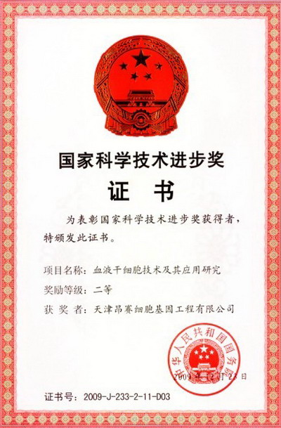 天津昂賽細(xì)胞基因工程有限公司獲得國家科技進(jìn)步二等獎